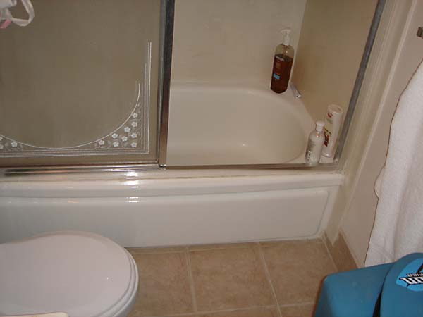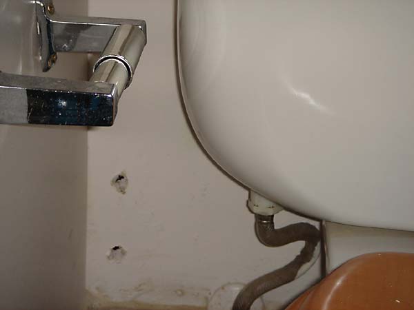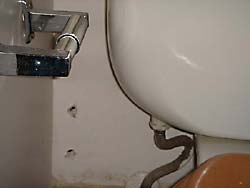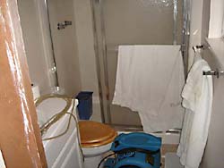 Master Bathroom and Damaged Bedroom below - note pre-existing patches in both areas.